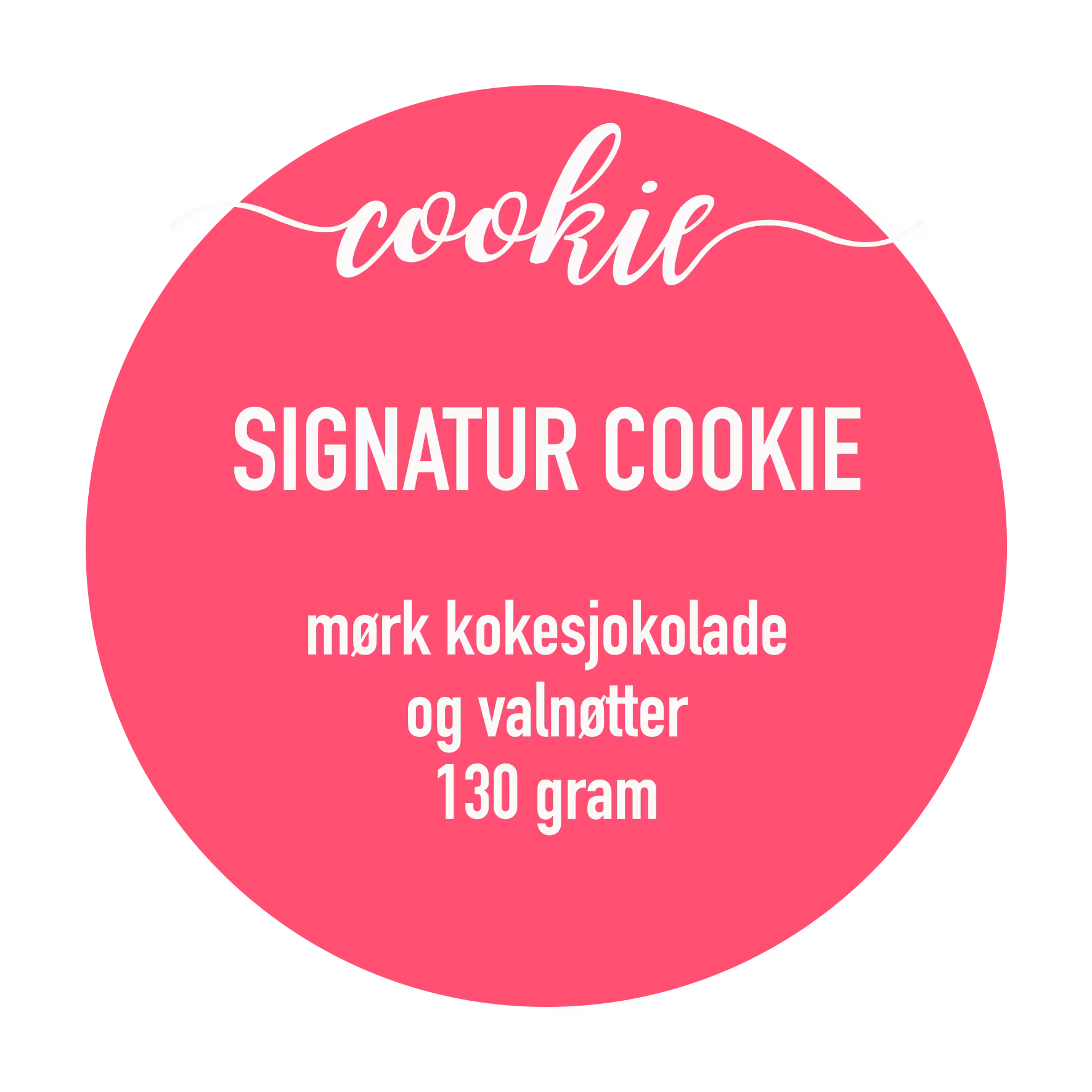 SIGNATURE COOKIE med mørk sjokolade og valnøtterInspirert av NYC-cookie130 gramPakket enkeltvis i matgodkjent plast for lengre holdbarhetPostgang 3-4 virkedager